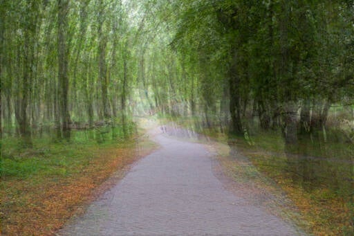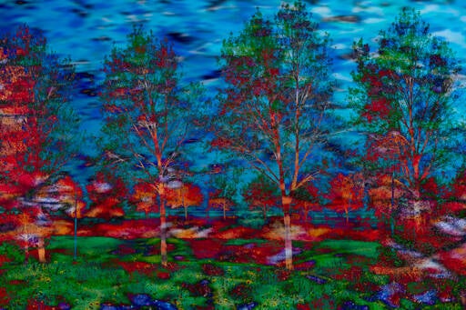 Afmetingen reflectie bomen in water: ca 52x52 cm. Prijs: €500.